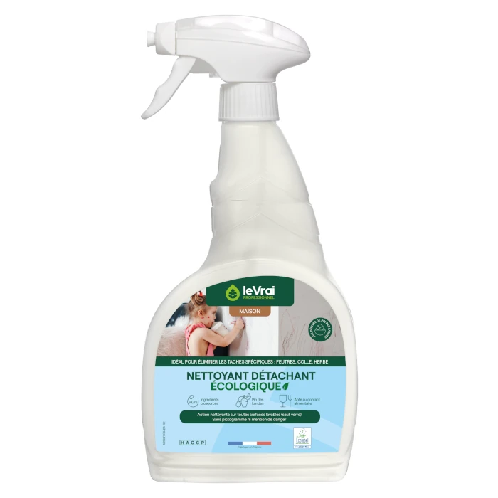 Formule détachante, prête à l’emploi, à base de solvants d’origine végétale, idéale pour nettoyer et détacher toutes surfaces lavables (sauf verre).