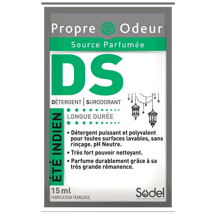 Idéal pour le nettoyage des sols en collectivités, DS Été indien neutralise les mauvaises odeurs, nettoie en profondeur toutes les surfaces lavables. Son Ph de 7 (neutre) permets une utilisation sur tous types de sols.