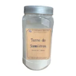 Terre de sommieres 600 g Dousselin issue de l’argile bentonite, elle permet de retirer les taches issues de corps gras et de détacher à sec les tissus fragiles